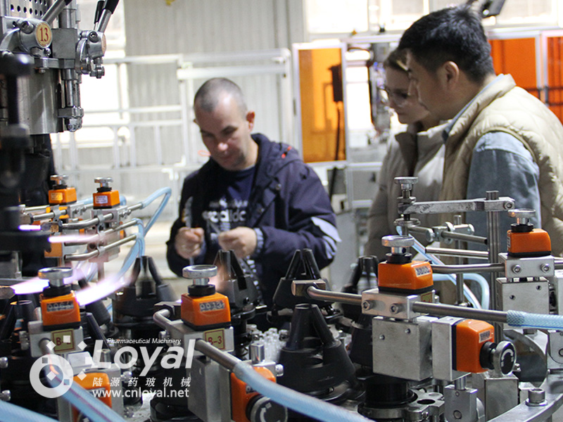 西林瓶生產(chǎn)線包括:自動上管、自動成型、經(jīng)機械手轉(zhuǎn)換至前端檢測線(也叫生產(chǎn)管控)、檢測線檢測的項目:1、瓶口內(nèi)外徑 2、瓶身長短 3、瓶身外徑 4、瓶口邊厚 5、瓶底內(nèi)凹尺寸檢測;經(jīng)檢測后的合格品再用機械手夾盤轉(zhuǎn)換至退火爐網(wǎng)帶上,經(jīng)高溫減除應(yīng)力后再降溫,通過氣動吸盤將回火后的小瓶轉(zhuǎn)換至后端檢測線,后端檢測(也是重檢也叫終檢),經(jīng)后端拍照檢測項目